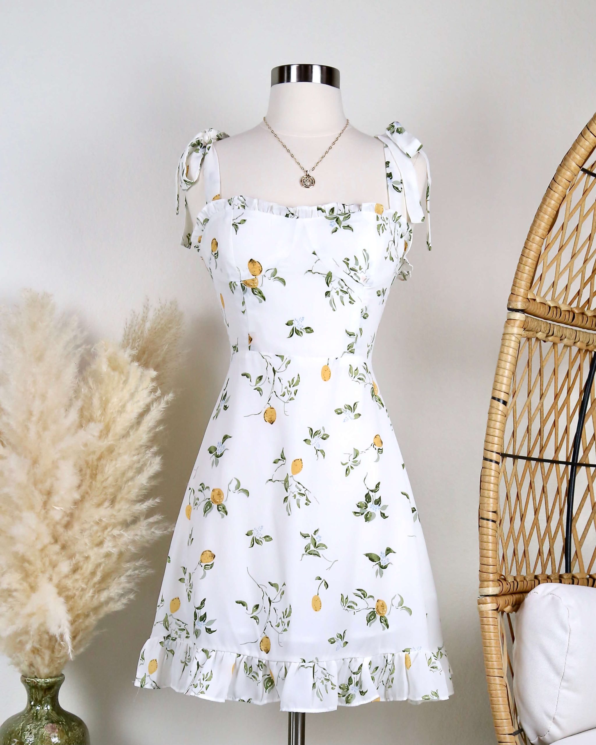 Livelyclothing Lemon Floral Mini Dress with Tie Straps