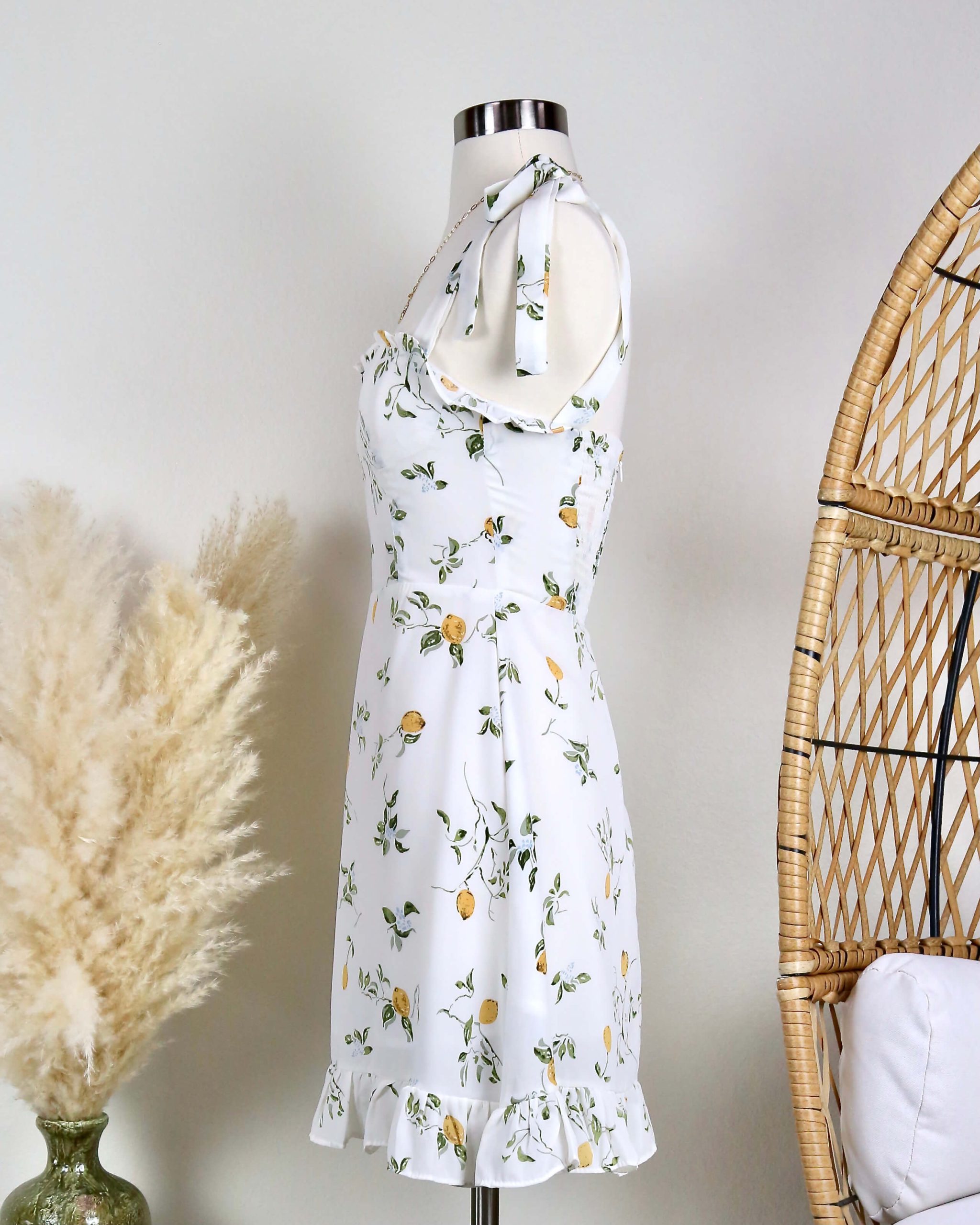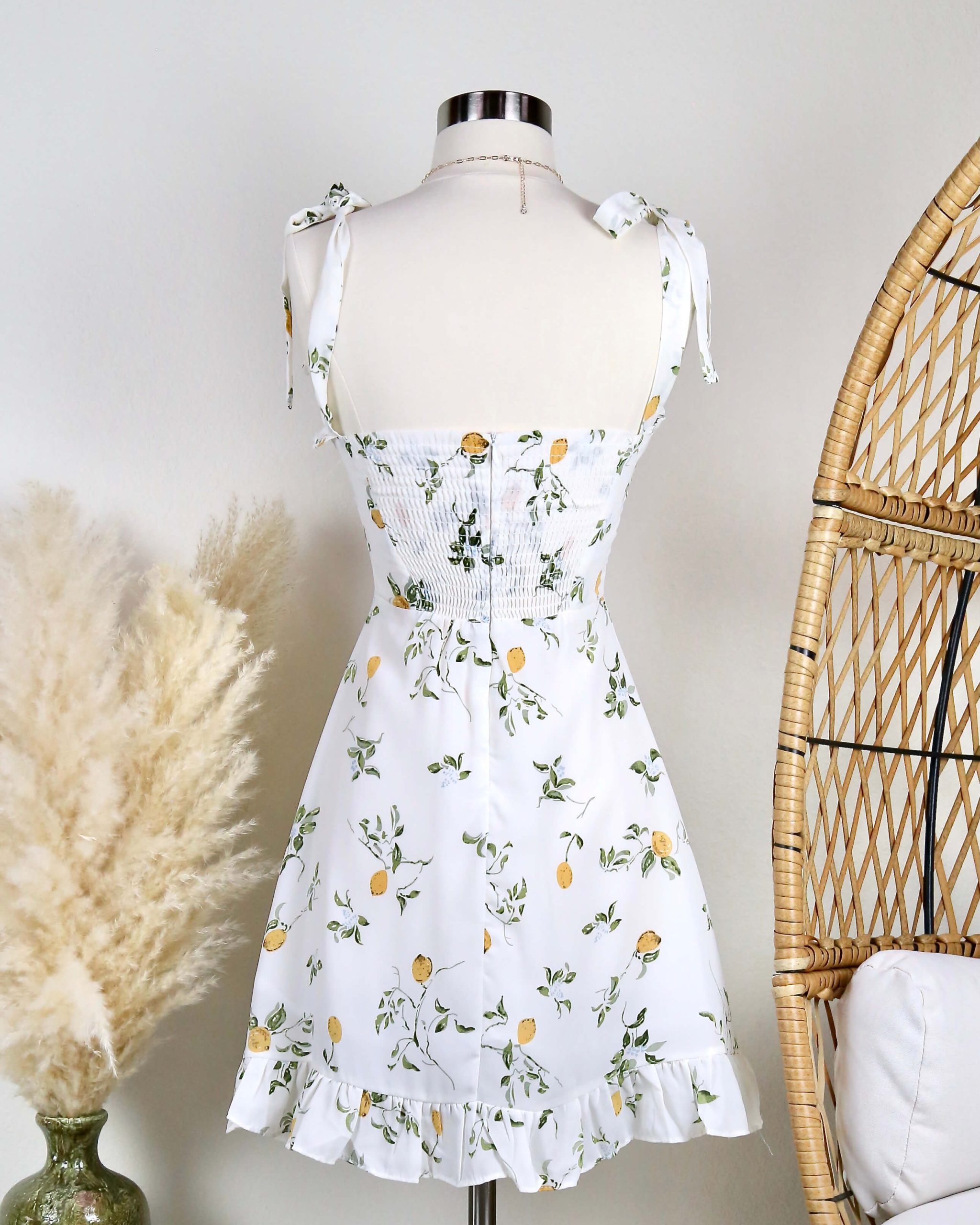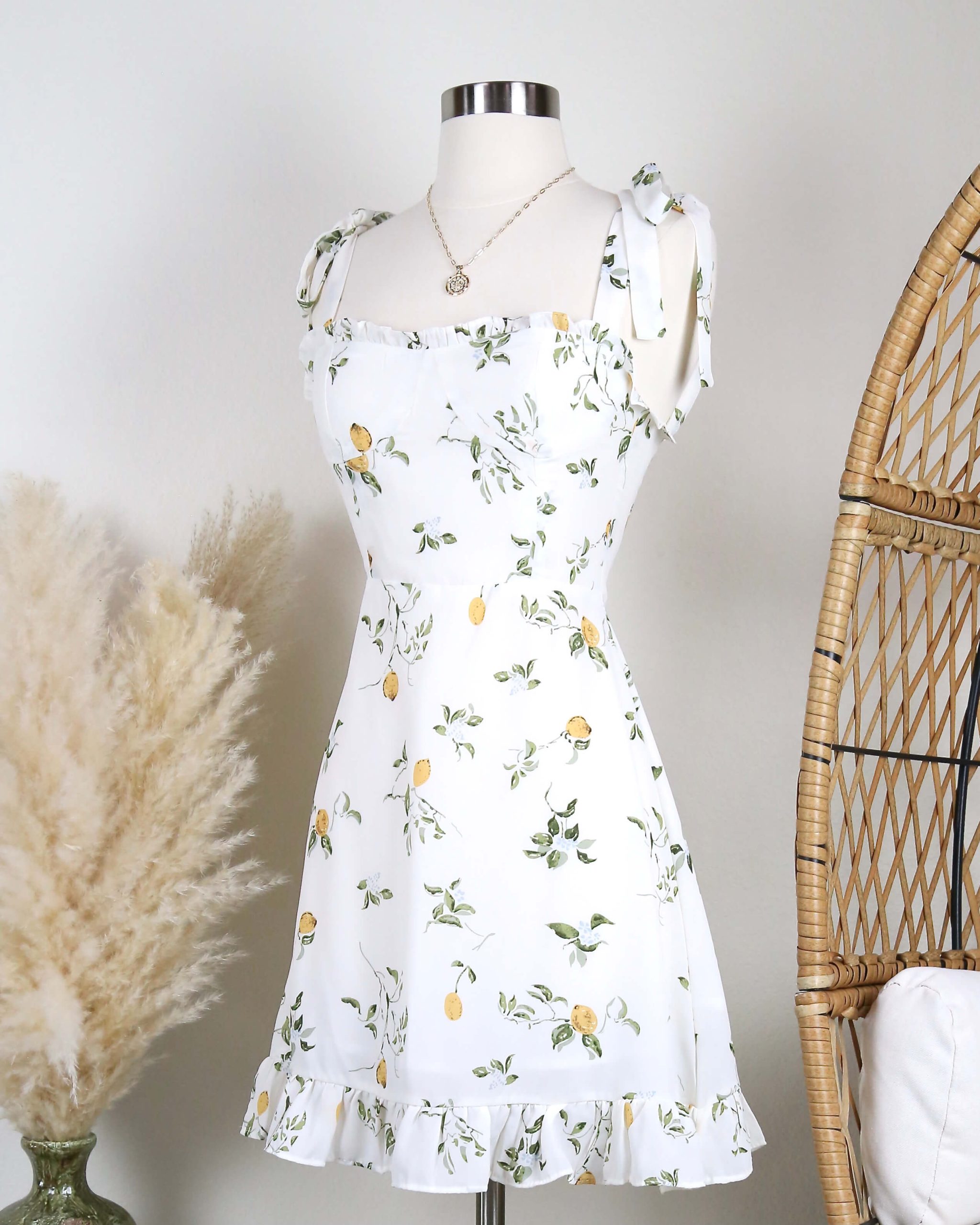 Livelyclothing Lemon Floral Mini Dress with Tie Straps