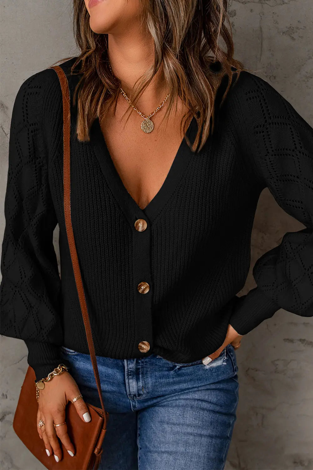 V Neck Long Sleeve Button Down Ribbed Sweatshirts Cardigan