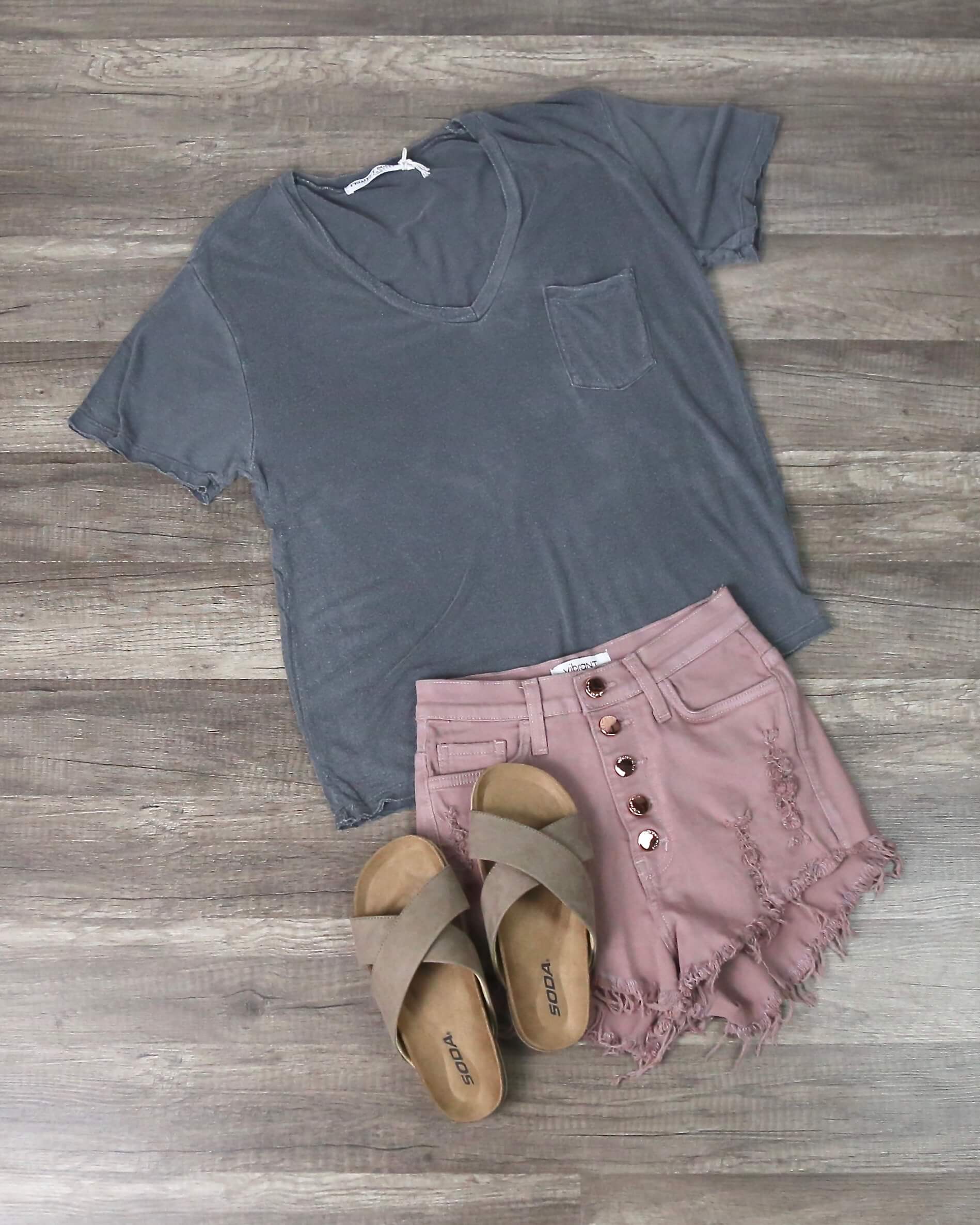 Livelyclothing – Livelyclothing Rolled Cut Off Denim Shorts in Beach Break