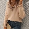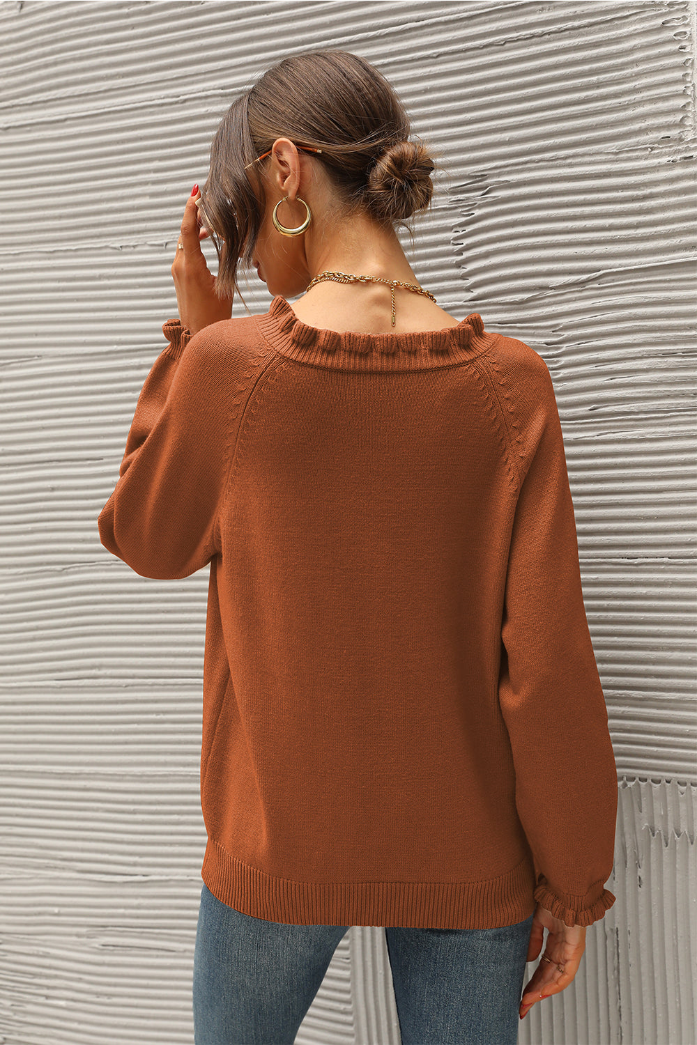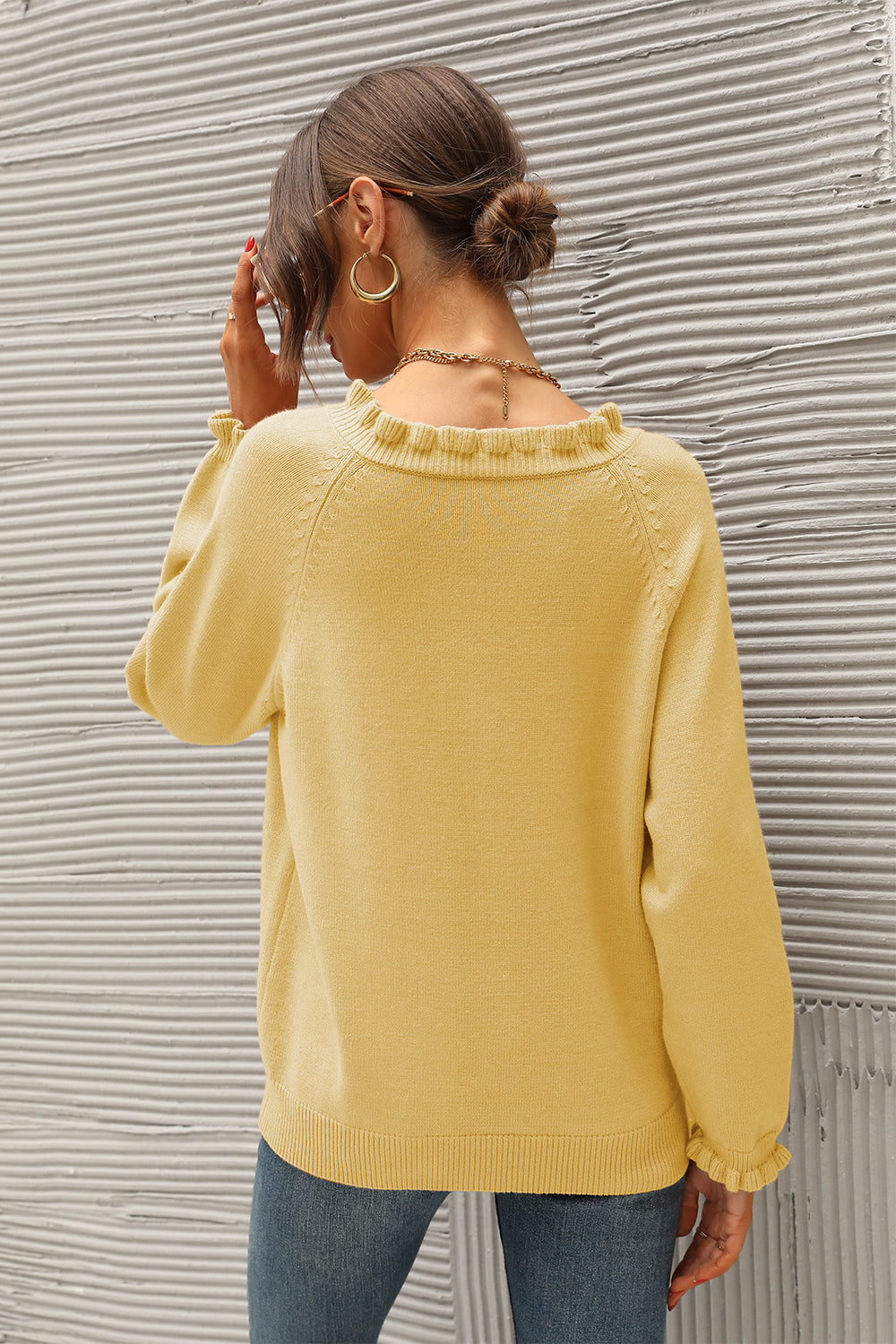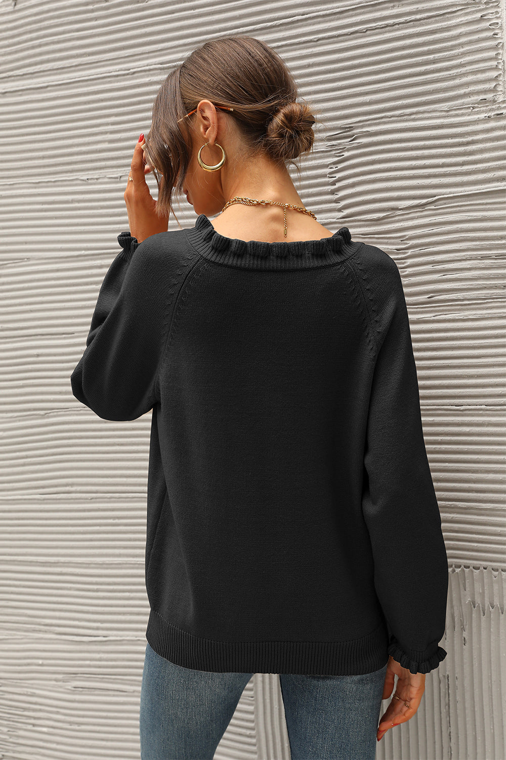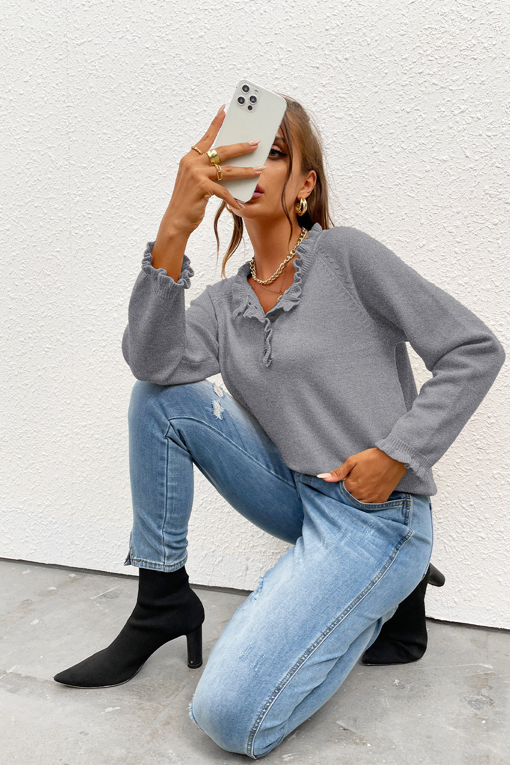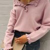 Long Sleeve Button Down Ruffle Knit Pullover Sweater Tops