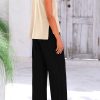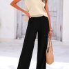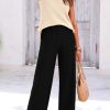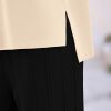 Design: A 2-piece suit includes a high-low slit hem top and high-waisted wide-leg pants