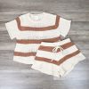 This super cute knit shorts featured in a camel ivory color is a piece you don’t want to miss out on! It’s comfy, cute, and casual. It’s the perfect pair of shorts to lounge in or to go out in, it’s versatile! Wear this with the matching Stripe Knit Top in Camel Ivory for a super cute look!