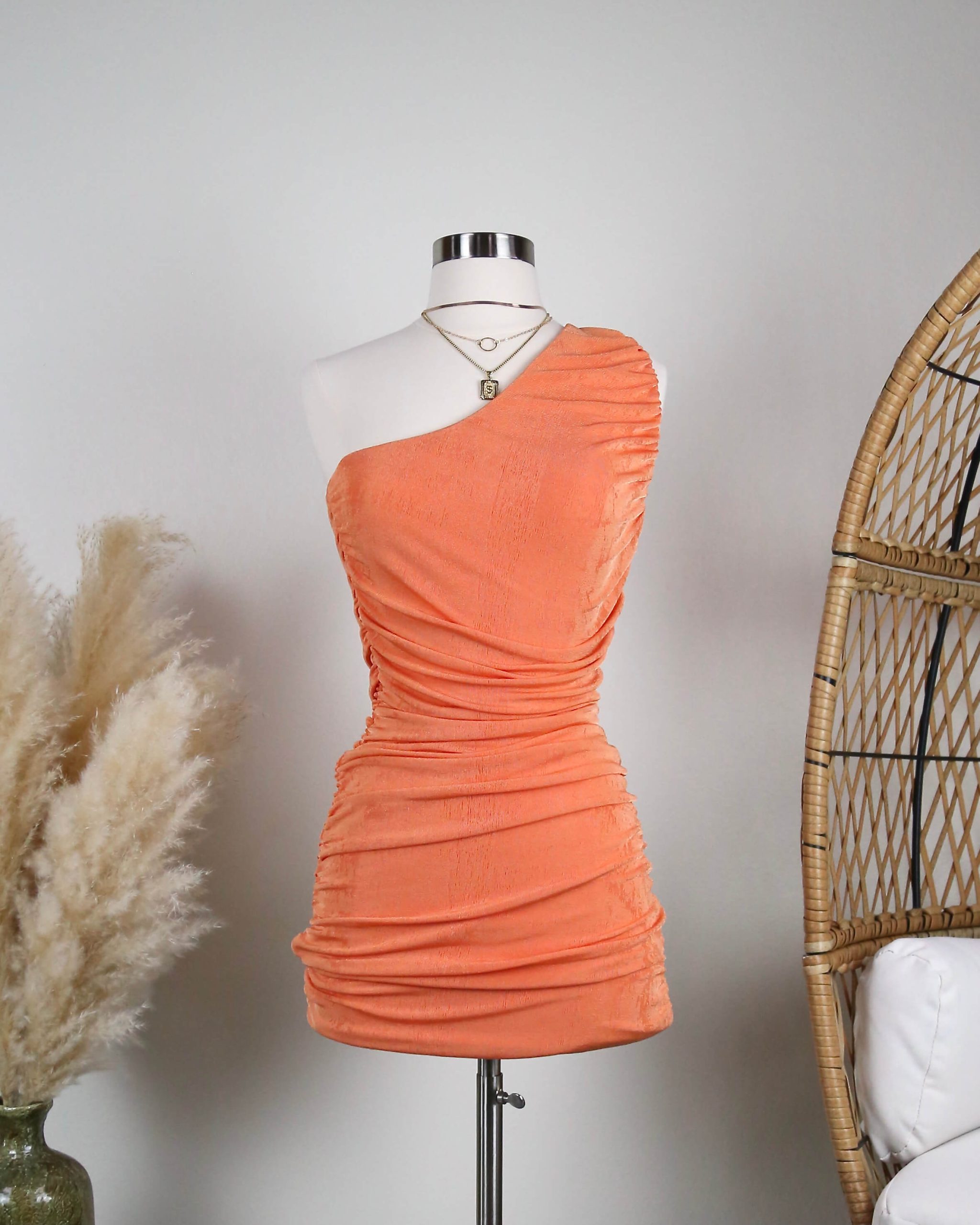 The Goddess Ruched One Shoulder Mini Dress in More Colors