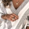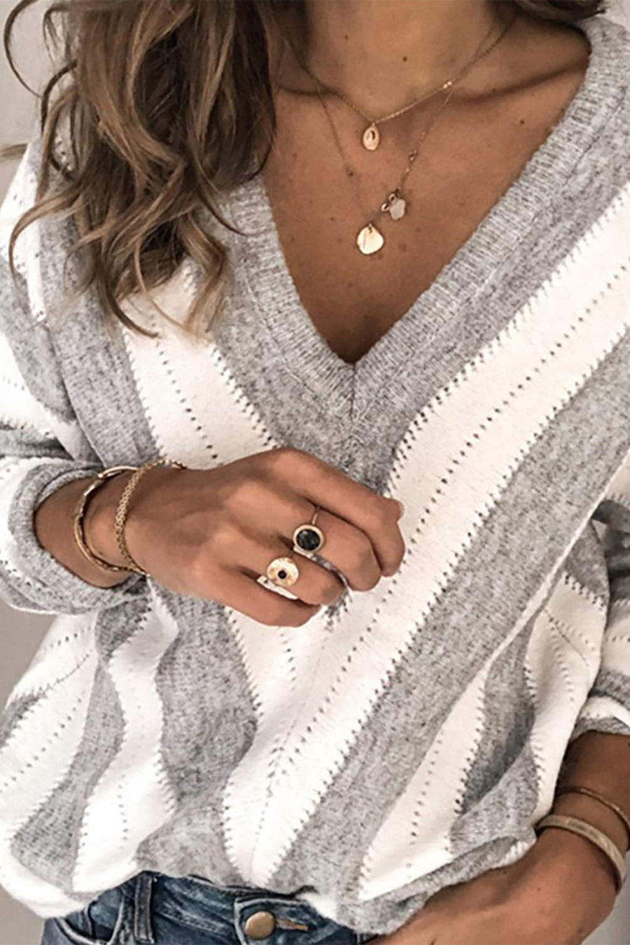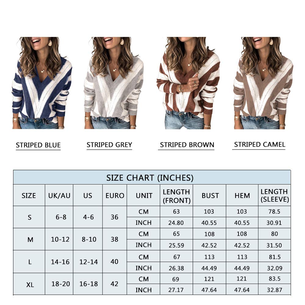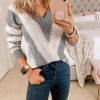 V Neck Stripe Color Block Loose Oversized Pullover Sweater quantity