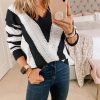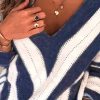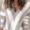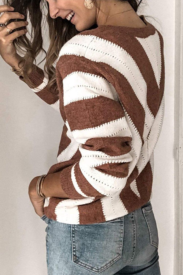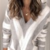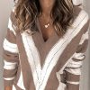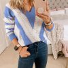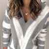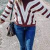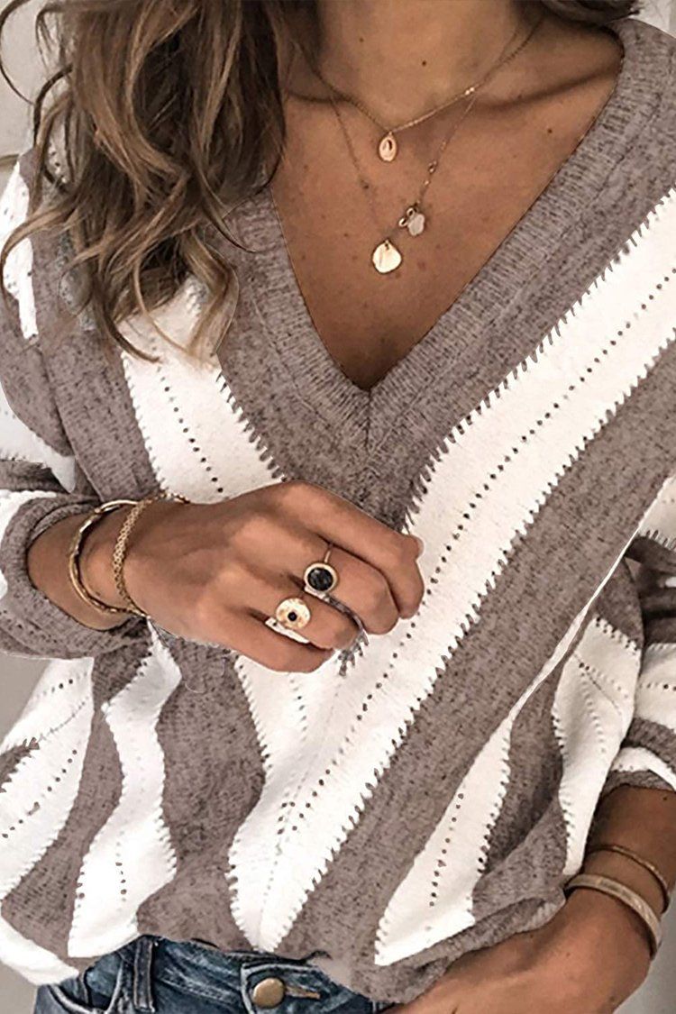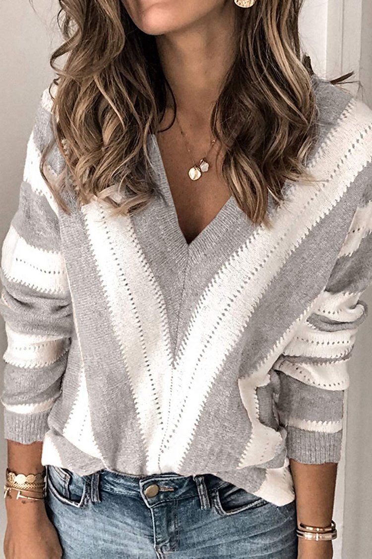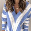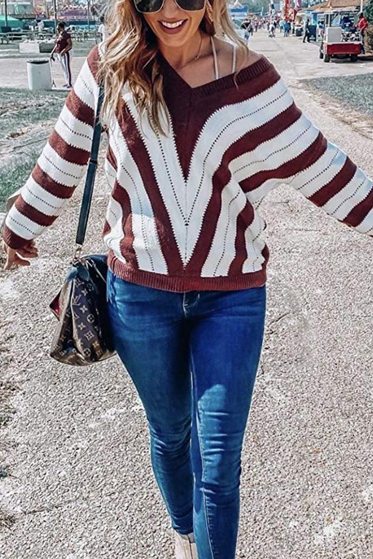 V Neck Stripe Color Block Loose Oversized Pullover Sweater
