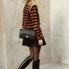 Long Lantern Sleeve Striped Ribbed Knit Pullover Top quantity